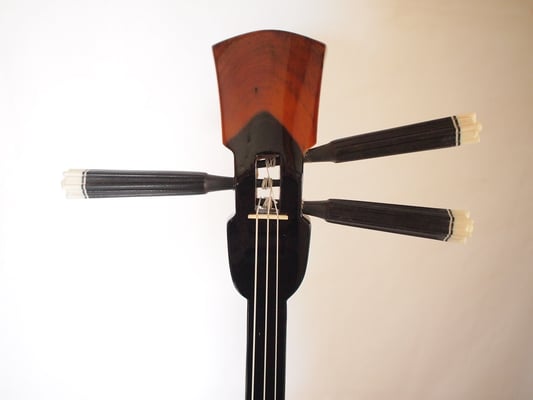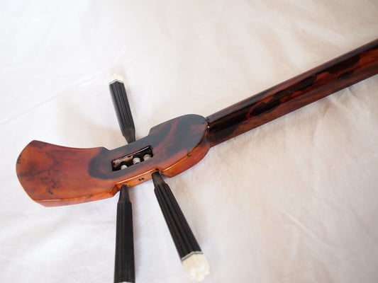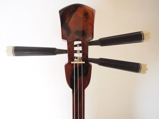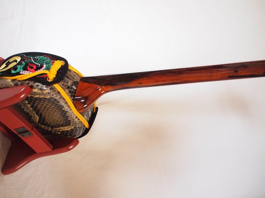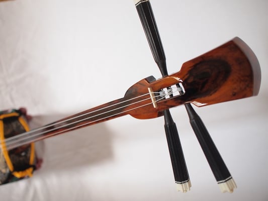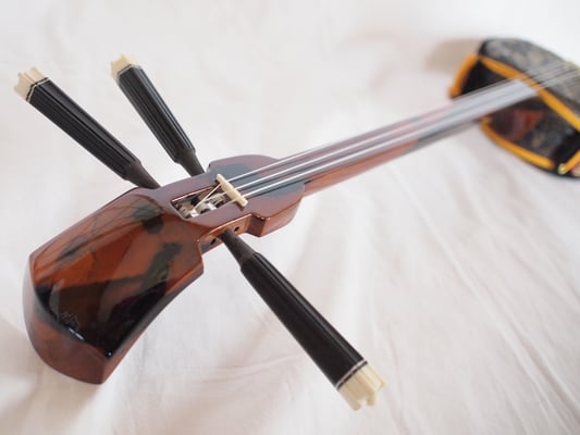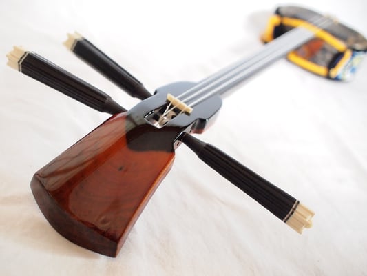 第四弾で用意した三線もあります。こちらも本当に綺麗なウズラ模様。音も上等に響いております。