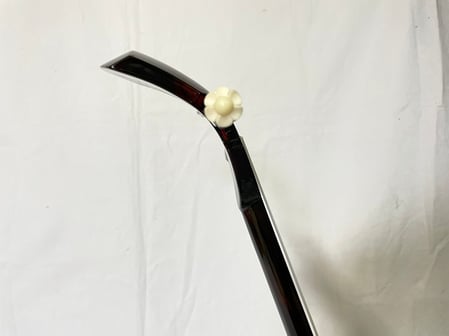 天の曲がりが通常より大きいものになります。これは昔まだ芯が太い黒木が豊富に採れたたころ、遠慮なく曲がりもとることが出来たからでは・・・、かどうかは定かではありませんが、でもやはりこれだけの曲がりを芯の黒い部分だけで作ろうと思うと、現存する原木ではほぼ不可能です。そんな棹がタンスの奥から出てきましたので、コロナセールで紹介出来る黒木がなくなった今、最後に格安で提供しようかと今回三線として仕上げました。